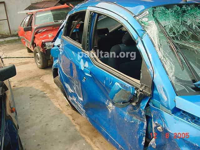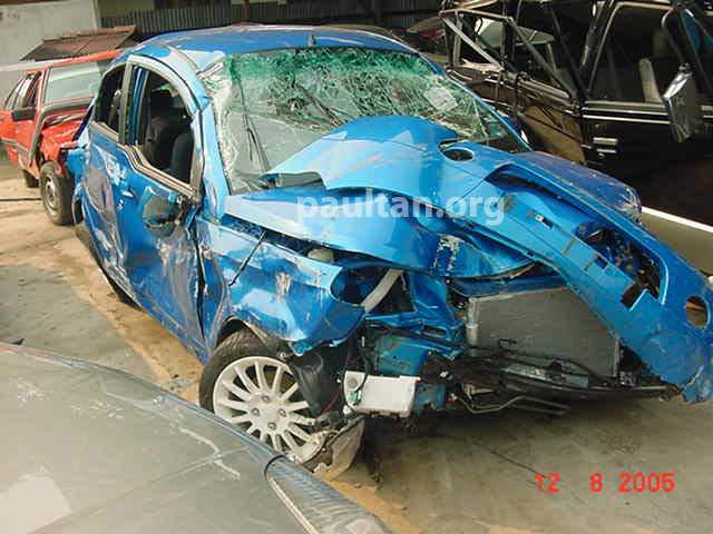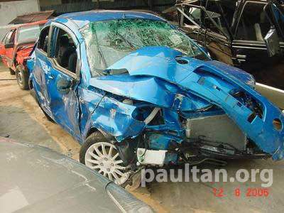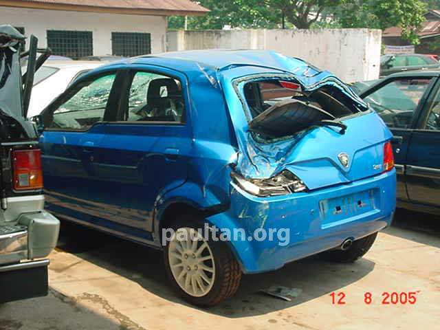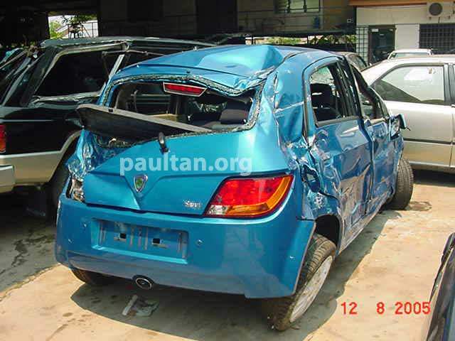 kewl.. the cabin barely suffered damages.. the exterior damage looks horrific.. -_-' even the radiator is still intact.. lol.. great advancement in safety, proton.. sincerely