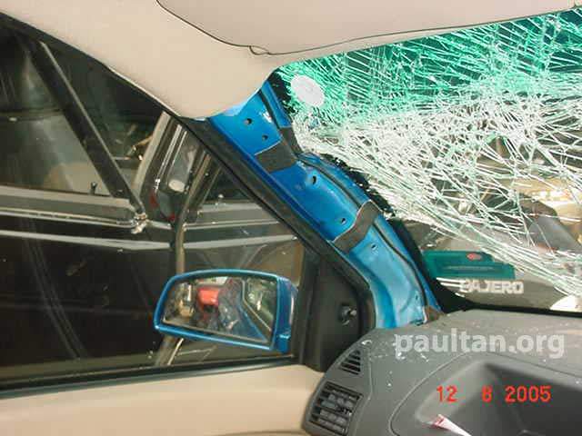 I'm impresed the front windscreen isn't shattered . Are they using shatter-proof glass at proton now?