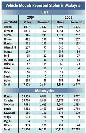 Statistics have shown that in the first six months this year alone, 35,888 vehicles were stolen, leading to RM357 million ringgit in losses.