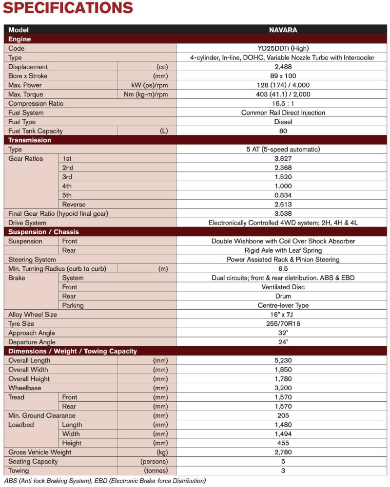 The Navara comes with a 3 year or 100,000km warranty in Malaysia.