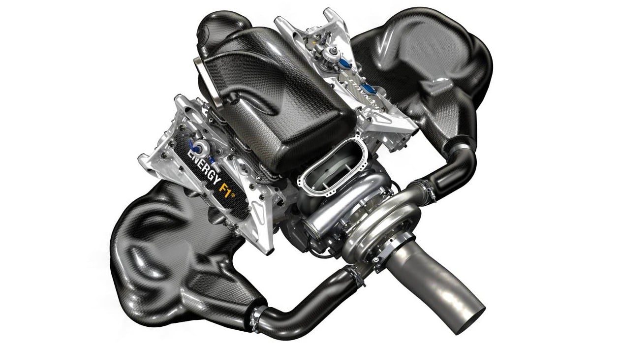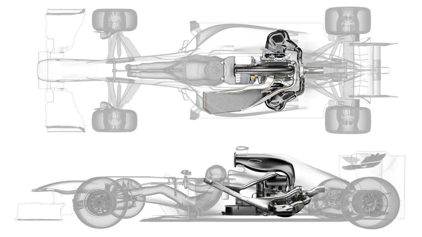 The F1 Power Unit, officially named Renault Energy F1 in a bid to illustrate its shared DNA with its road-going Energy cousins, is a 1.6 litre V6 direct injection turbocharged unit, with the pressure charging architecture consisting of a single turbine and compressor.