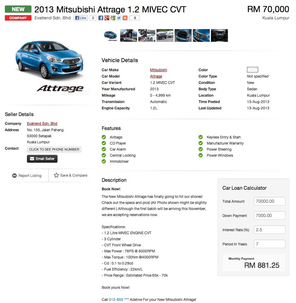 Mitsubishi Attrage on oto.my – RM65-70k estimated