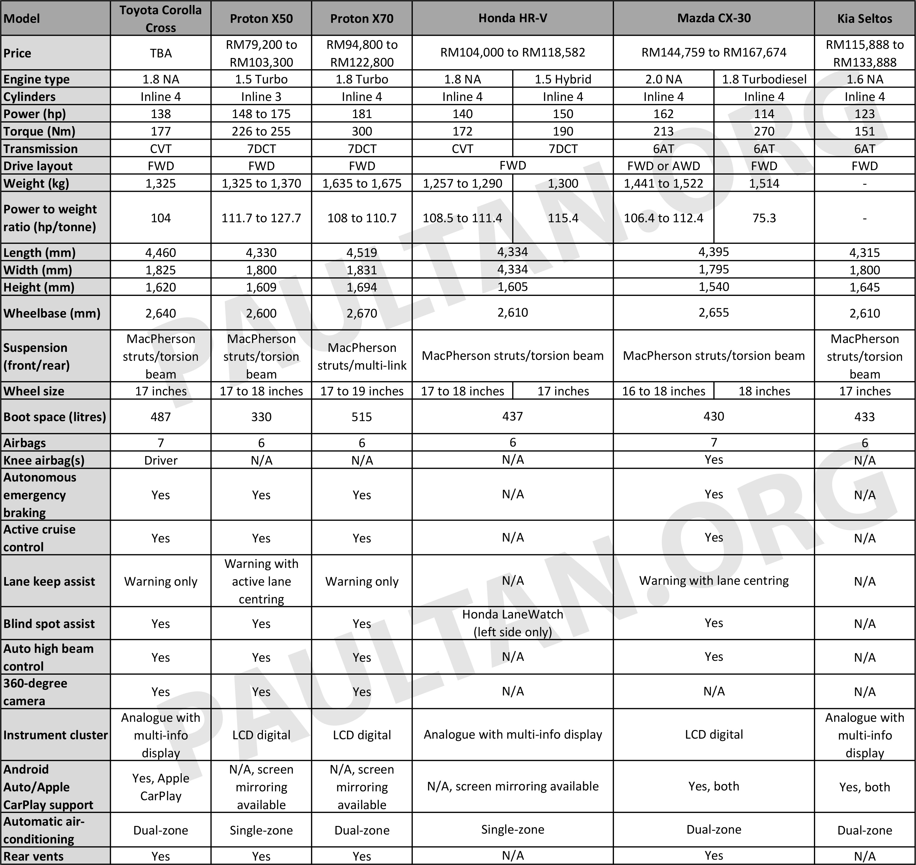 Back to Story: Toyota Corolla Cross compared to other B-, C-segment SUVs – Proton X50, X70; Honda HR-V; Mazda CX-30 Next Image Previous Image