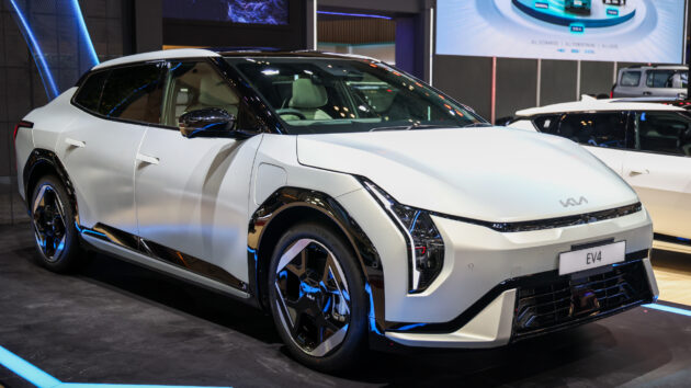Kia EV4 全球首发, 有四门Sedan与五门Hatchback版可选, 续航里程最长630公里, 7.4秒破百, 采用400V电动架构
